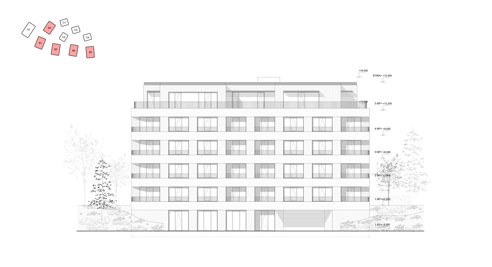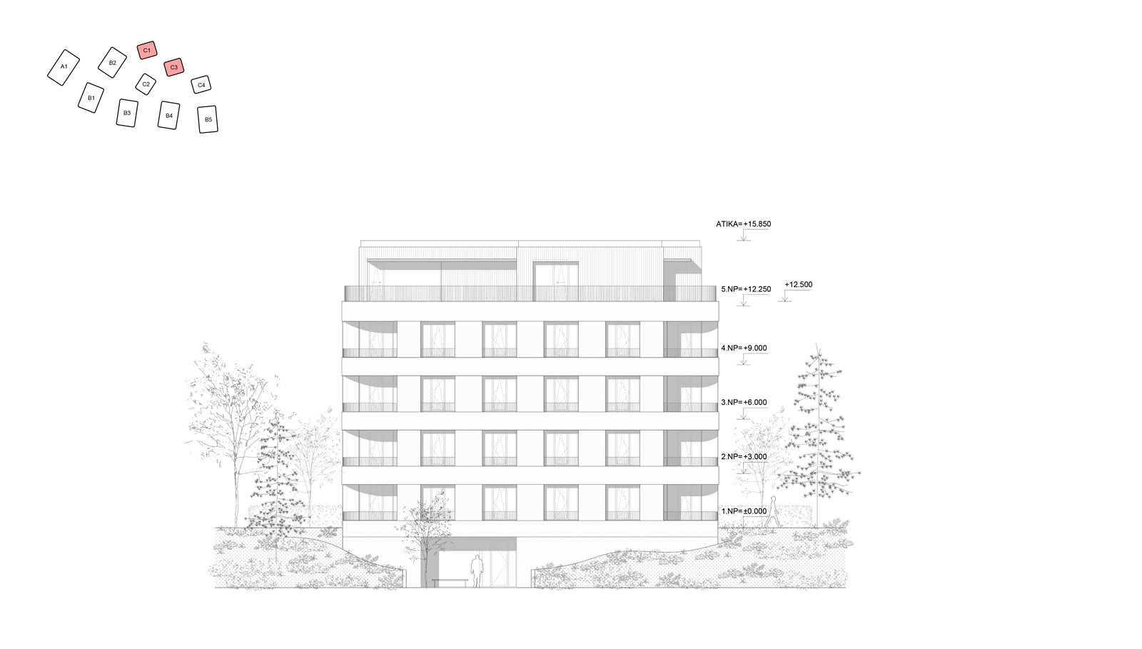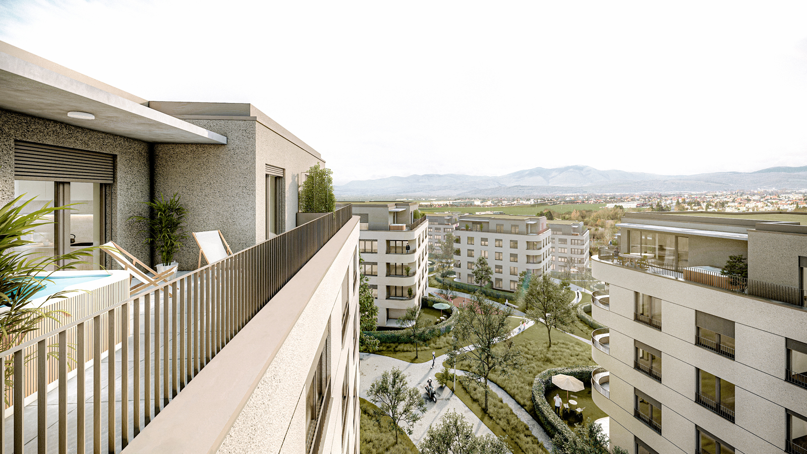 Kľúčovou témou bolo „naťahovanie“ zelene od prírodného prostredia do novonavrhovaného územia bývania. Rovnako aj rešpektovanie súčasného terénu a jeho potenciál na vytvorenie zaujímavého a pestrého prostredia plného priehľadov a prirodzených terénnych situácií.